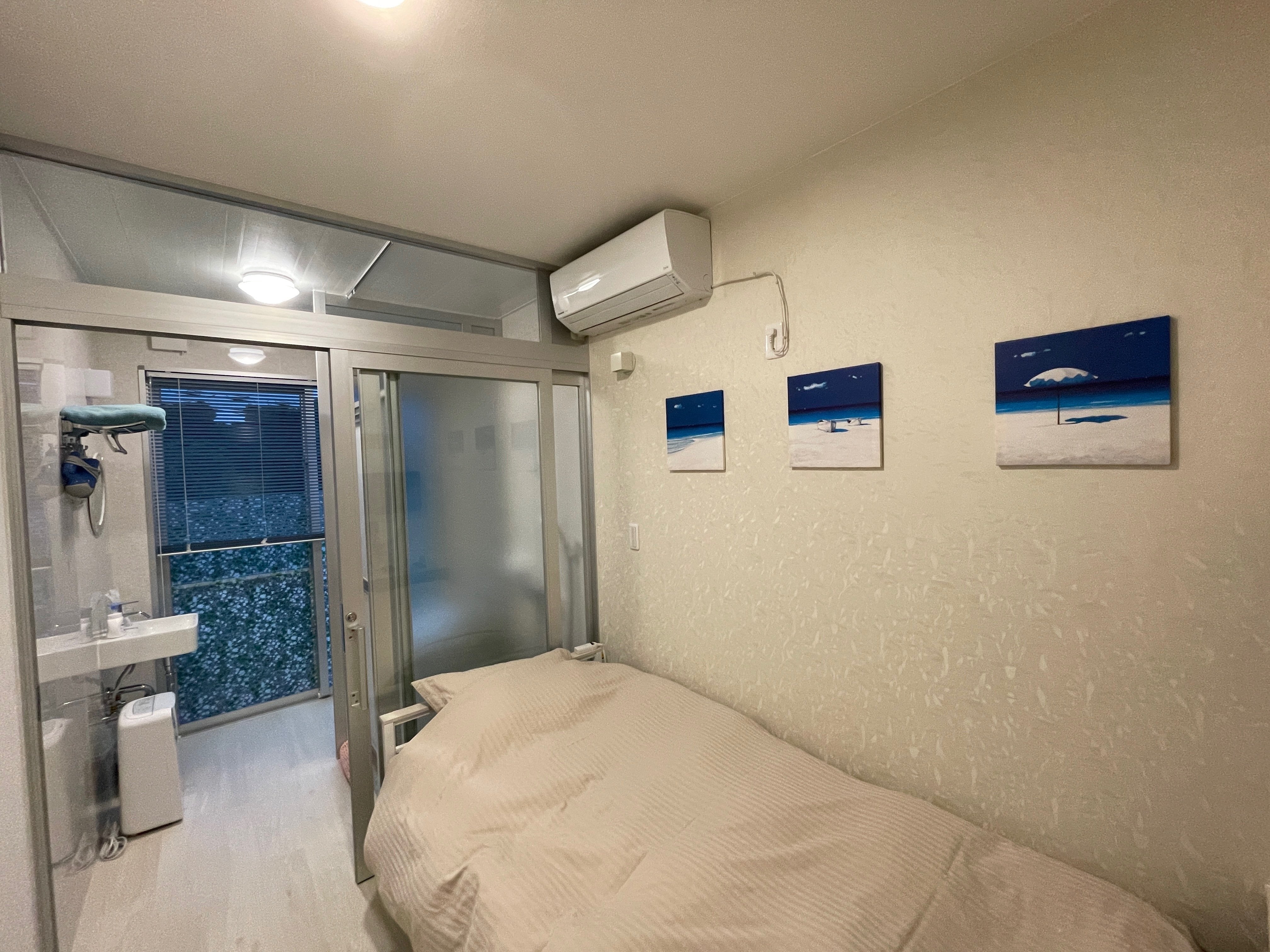 1階部分の宿泊施設。白とコバルトブルーが美しい♫