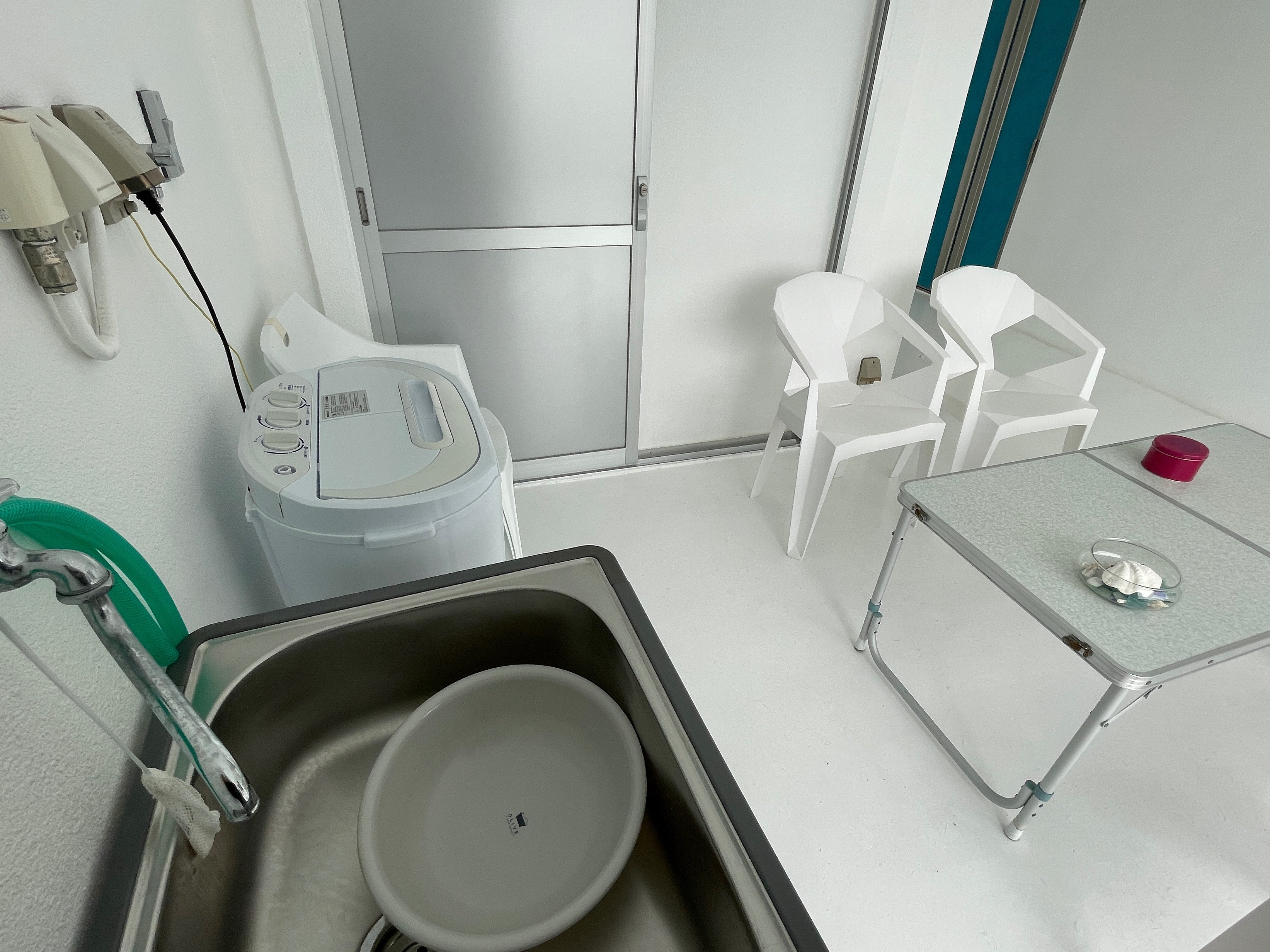 器材を洗えるスペースはこんな感じです。駐車場のところにあるので、車からダイビング器材などのマリンスポーツの道具を出したらすぐ洗えます。